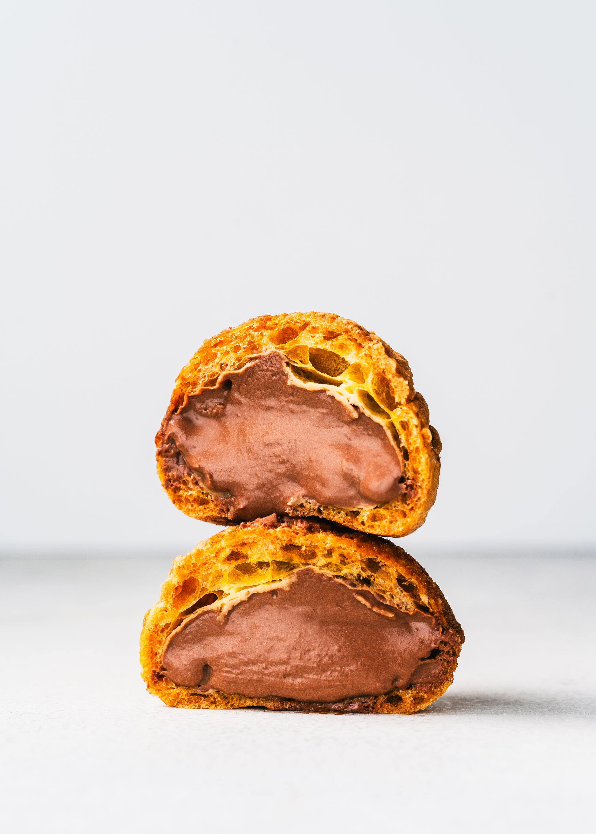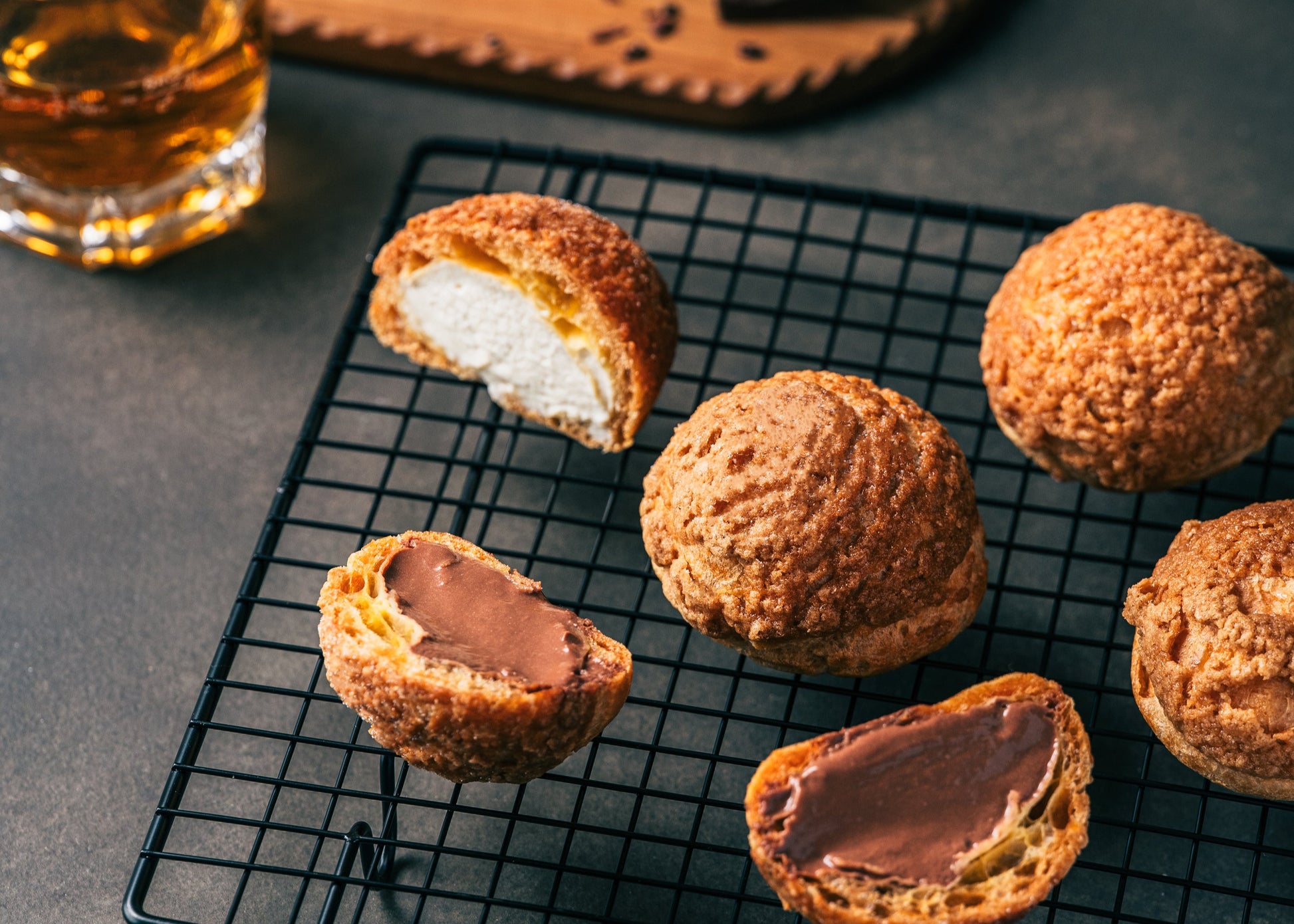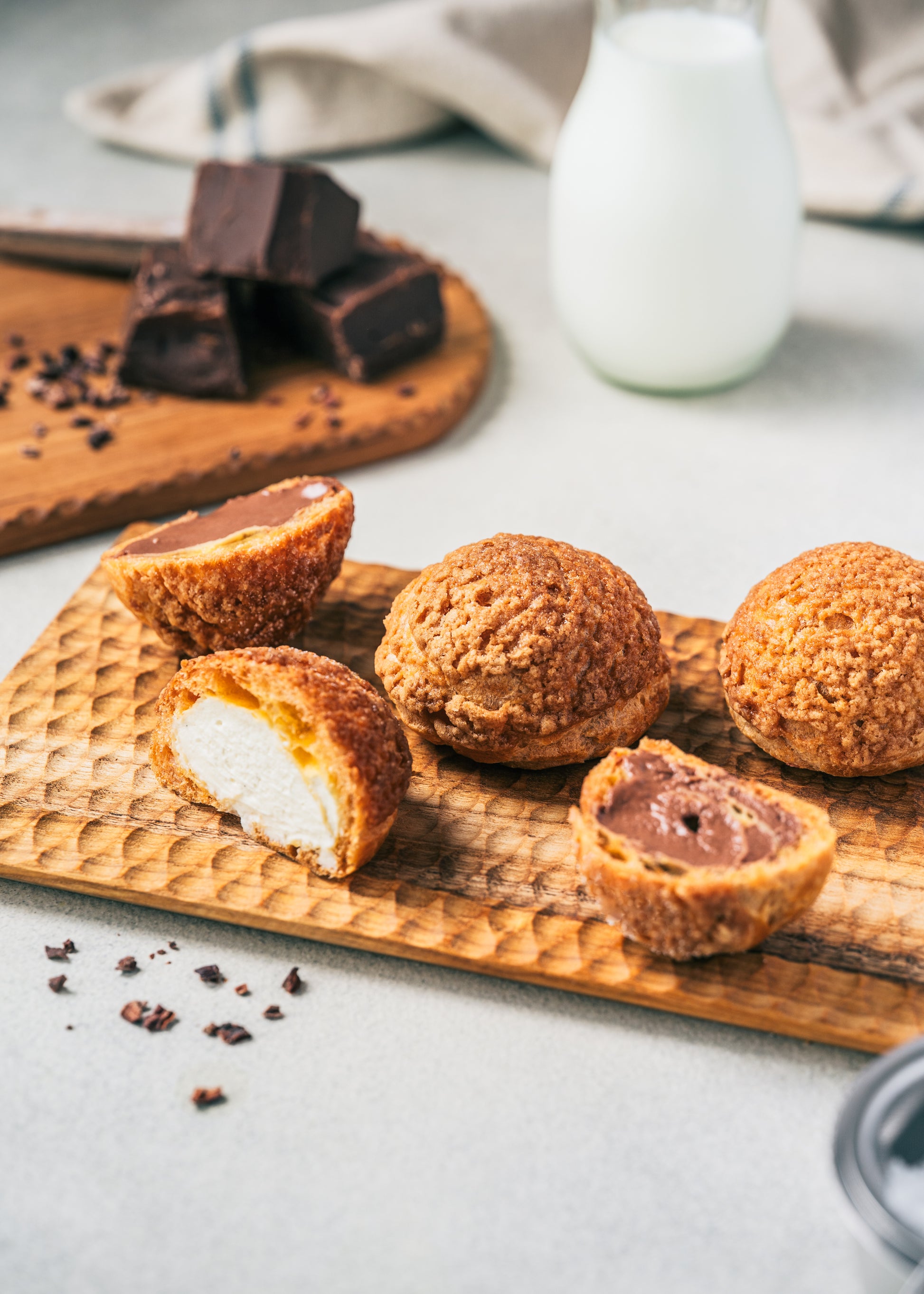 発酵熟成チョコレートの個性豊かなカカオの香りは、時間をかけてやいたシュークリーム生地と、