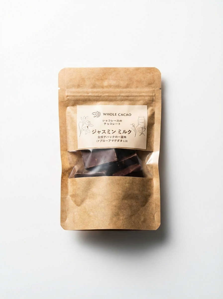 タイ産のジャスミン茶葉がタイ産ダークミルクチョコに溶け込み、華やかなジャスミンの香りが広がるミルクティのような味わい。